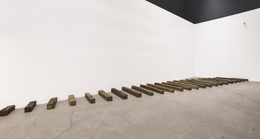 Site-specific installation; wood, railway sleepers, metal staples
